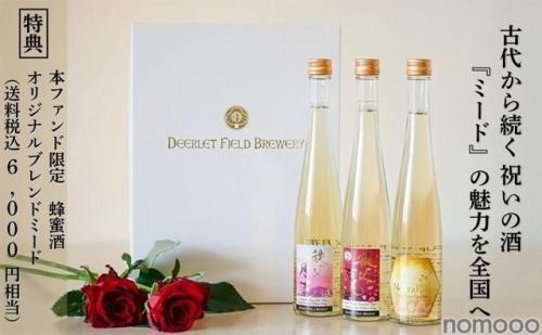 出資者への特典として、1口につき「本ファンド限定のオリジナルブレンドミード 750ml」(送料税込6,000円相当)が1本提供されます。このミードは、創業初期から大切に熟成させてきた複数のミードを贅沢にブレンドした、複雑で厚みのある味わいが特徴の特別な一本です。