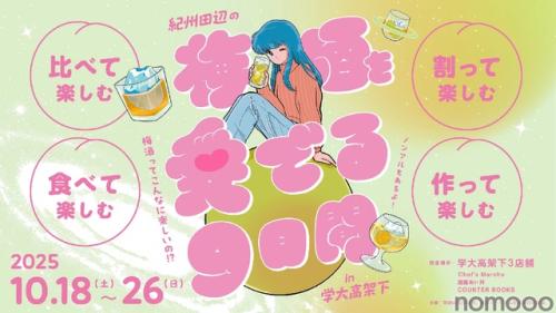 また、イベント初日となる10月18日(土)には、和歌山県田辺市のファンで、10年以上通い続けているという文筆家・エッセイストの甲斐みのりさんによる、田辺の梅酒と旅の魅力が伝わるトークショー「甲斐みのり×和歌山県田辺市 トークイベント ~梅酒から広がる田辺旅のたのしみ~」も開催。「梅酒って、こんなに楽しいんだ!」と驚きを隠せなくなること間違いなしの、"あなたのまだ知らない梅酒の楽しさ、奥深さ"が体験できる9日間限定のイベントです。