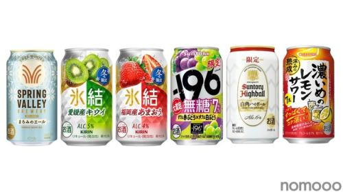 キリンビールから北欧文化にインスパイアされた華やかなクラフトビール「SPRING VALLEY BREWERY まろみのエール」、氷結ブランドから冬の旬フルーツを使った「愛媛産キウイ」と「福岡産あまおう」の2種類が同時発売。サントリーからは、赤ぶどうと白ぶどうをダブルで使った無糖チューハイ「-196無糖〈ダブル赤ぶどう×ダブル白ぶどう〉」と、食事に合わせやすい「白角ハイボール缶」が期間限定でリリース。さらにサッポロビールからは、発売4年目を迎える人気商品「濃いめのレモンサワー 深みの熟成」が、さらにコク深くなって再登場します。