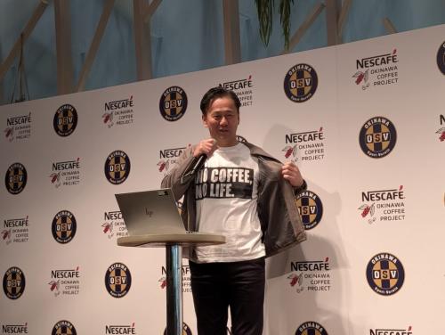 登壇したネスレ日本株式会社 代表取締役 社長 兼 CEO深谷 龍彦(ふかたに たつひこ)氏は、「どんどん気温が上がっていって気候変動があり、やがてコーヒー豆が採れなくなるんじゃないかと言われている。あるデータによると、半分くらい採れなくなるんじゃないかみたいデータまで出ているが、それを避けるにはいくつかの方法がある。もっと強い苗木の品種改良をする、低地から高地に栽培地を広げていくこともひとつの活動だと思っており、そういうチャレンジを沖縄でやっている」とプロジェクトの活動を報告。また、農業従事者の高齢化や、輸送費などによる本州での価格高騰など、さまざまな課題が山積みであることも指摘された。