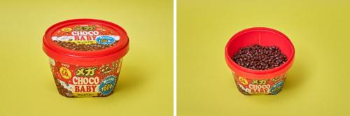 メガチョコベビーバケツは、450g・約1,600粒を詰め込んだ特大サイズである。通常のチョコベビーが32g程度・約110粒であることを考えると、そのスケールは実におよそ15倍。ここでポイントになるのは、“量が多い”という事実よりも、“どのように食べるかに裁量がある”という余白の大きさだ。家族や友人とすくって食べればパーティーの主役になり、あえて一人で好きなだけ食べれば童心の解放体験になる。さらに、バケツが空になったら通常サイズを継ぎ足すことができ、“無限チョコベビー化”すら可能という仕組みもおもしろい。単体で完結する商品ではなく、所有することで継続的に遊べる“体験型お菓子”としてデザインされている点にユニークさがある。