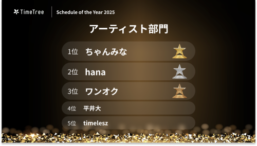 2位には1位の「ちゃんみな」と関連してオーディション番組「No No Girls」から誕生した「HANA」がランクイン。3位「ONE OK ROCK」と4位「平井大」、5位「timelesz」については、いずれも大型ツアーを発表しており、遠征の計画や複数公演管理のニーズが予定登録を押し上げたと思われる。