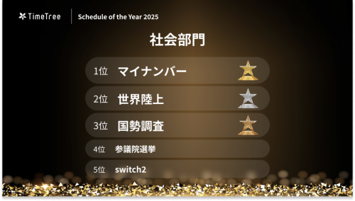 続くノミネートには「世界陸上」や「参議院選挙」「国勢調査」など数年に一度しか行われないイベントに関連した予定の他、発売後の転売対策なども話題になった「switch2」がランクインした。