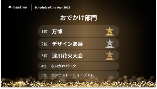 全世界の登録ユーザー数が7,000万人を超えるカレンダーシェアアプリ「TimeTree(タイムツリー)」。日々のスケジュール管理だけでなく、家族やパートナーとの共有ツールとして定着したこのアプリには、膨大な「未来の行動データ」が蓄積されている。その数、実に140億超。このビッグデータを統計的に分析・活用する社内機関「TimeTree未来総合研究所」が、来る2025年を象徴する“予定”トレンドを表彰するアワード「TimeTree Schedule of the Year 2025」を発表した。第1回となる今回は、6つの部門を設置。各部門で5つのワードがノミネートされ、その中から2025年を最も象徴する「Schedule of the Year」として「万博」が選出された。人々のカレンダーに刻まれた予定から、来たる年の潮流を読み解く。