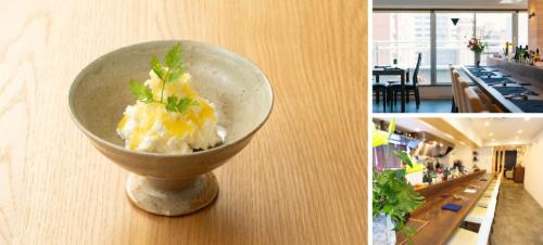 レストラン&バーSCENE(ヨーグルトと洋梨のモクテル/ヨーグルトドリンクのマーブルババロア)