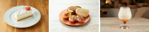 BASELの6店舗では共通の3メニューを展開。「4層のレアチーズ」は食感のレイヤーが楽しく、「6種のヨーグルトディップ」は日替わりで味の変化が楽しめる。「八王子パッションソーダ」は見た目にも華やかで、食事にもカフェタイムにも合わせやすい一杯に仕上がっている。