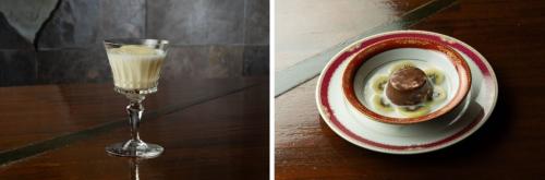 洋梨とヨーグルトを合わせたモクテルは、食後にふさわしい上品な仕上がり。マーブルババロアは見た目も楽しく、口当たりの良いデザートとして人気を集めそうだ。