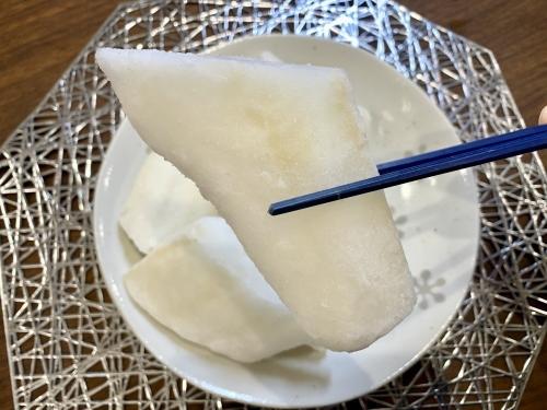 自然解凍して皮をむけば、きれいな果実がお目見え。