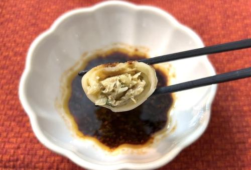 中には豚肉やキャベツ、ニラなどの具材が豊富です。調理は普通の餃子と同じ蒸し焼きでOK。