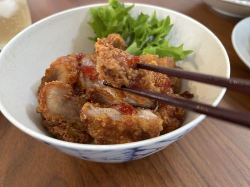 醤油ベースにニンニクがしっかり効いた味付けは、濃すぎず、まさに絶品。そのまま食べるのはもちろん、スイートチリソースをかけて丼にするアレンジも、エスニックな甘辛さが絡んで最高です。