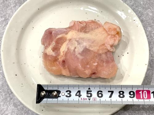 1袋に500gの鶏もも肉が入っており、一つが約8cmと大ぶりなので、好みの大きさに切り分けて使える自由度の高さも魅力です。