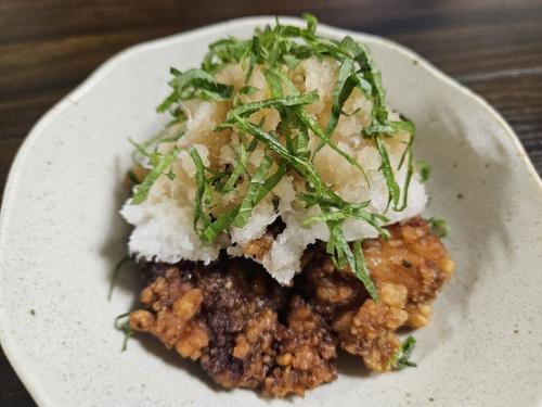 衣はザクザクと音を立てるほどクリスピーになり、香ばしさの中にスパイスと醤油の風味が際立つ、やみつきの味わい。白いご飯にもお酒にも相性抜群です。