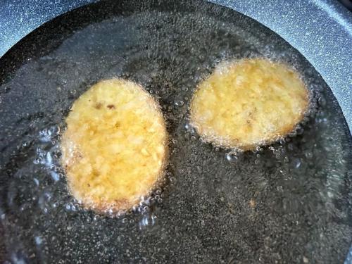 揚げる時間は3個で5分半と少し長めですが、その分、衣は「ザクザク」とクリスピーに。