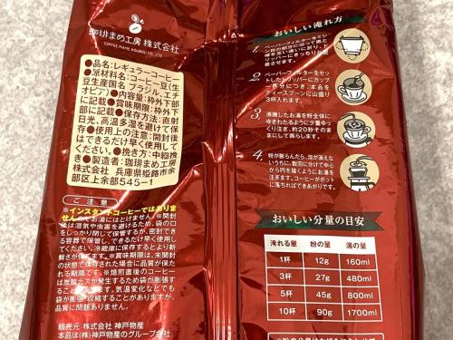 コーヒー1杯(160ml)あたりに使用するコーヒー粉は12g。360gの内容量なので、約30杯のコーヒーを作れる計算ですね。