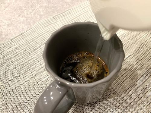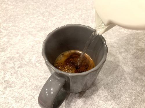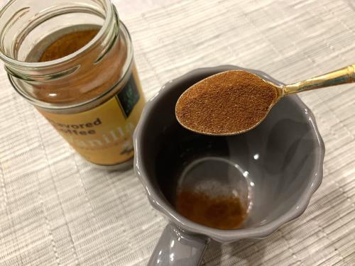 ティースプーン1杯(約2g)に、お湯140mlを注いでいきます。ストレートなコーヒーを楽しめるのはもちろん、ミルクを加えてバニラカフェオレを作るのもおすすめです!