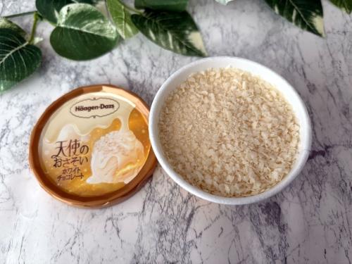 アイスの上にたっぷりのサクサクの何かが乗っています。