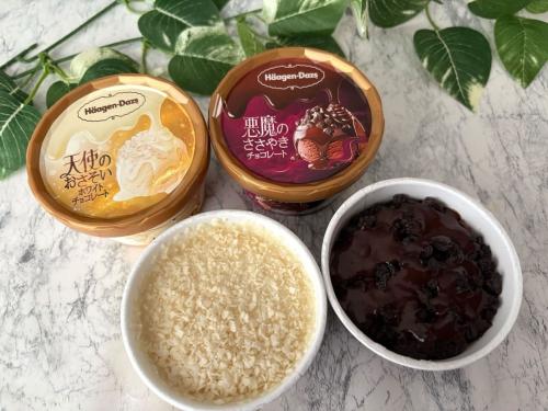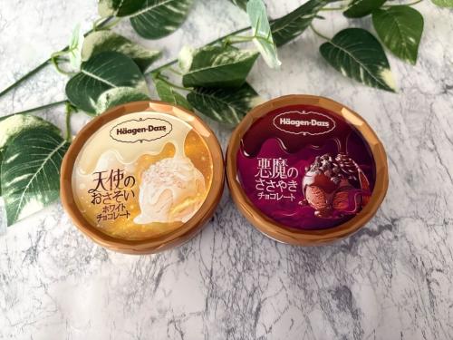 商品名:ハーゲンダッツミニカップ 天使のおさそい『ホワイトチョコレート』/悪魔のささやき『チョコレート』