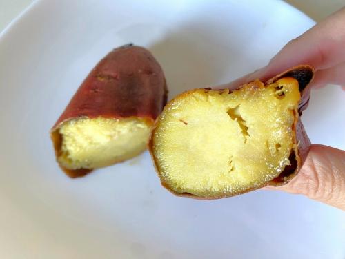 しっかり解凍された焼きいもは、手で持つと柔らかく蜜が出ていて見た目もとってもおいしそう。
