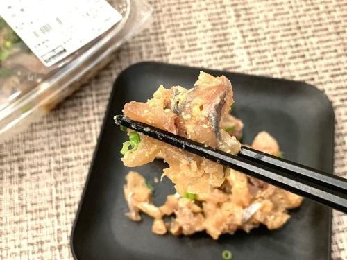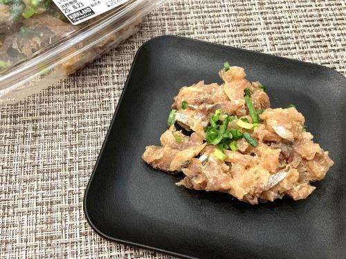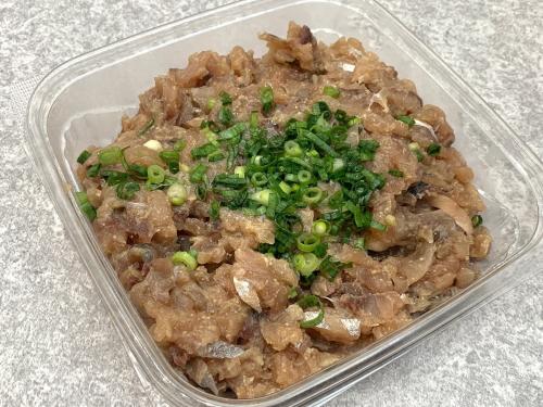 新鮮な鯵を生姜・味噌・ニンニクなどで味付けした一品。価格は100gあたり298円(税込)と、コストコの魚介系デリカの中では比較的安価です。