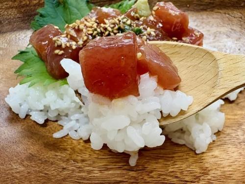 酢飯の爽やかな酸味が、マグロポキの濃厚な旨味の引き立て役に!バランスの良い味わいを生み出しており、シンプルなアレンジながら仕上がりは完璧です!