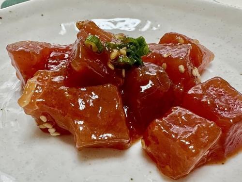 マグロを大きめにカットして味付けされた「マグロポキ(ユッキ風)」をご紹介します。