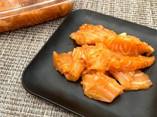 綺麗な色味をしたサーモンポキなので、テーブルに並べると食卓が映えること間違いなしです♪