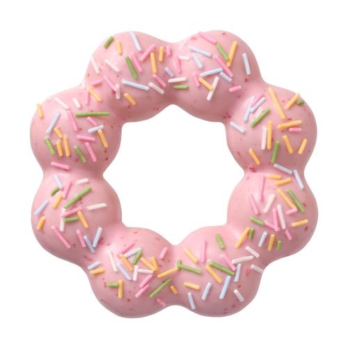ポン・デ・リングの生地をストロベリーチョコでコーティングし、カラースプレーシュガーを振りかけた一品。