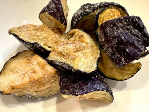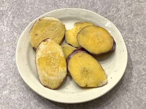 凍ったままのさつまいもをフライパンでじっくり焼き、バターと醤油で味を整えるだけで完成します。解凍の手間も不要で、手軽に作れるのが魅力。