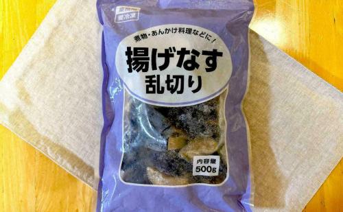 なすを乱切りにして油で揚げた後、急速冷凍した一品。