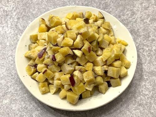 「さつまいもダイスカット」は、その名の通り、小さいサイコロ状にあらかじめカットされた冷凍さつまいもです。