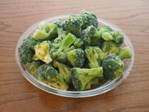 大容量で目を引く、業務スーパーの冷凍ブロッコリー。。使いやすい小房に切り分けられたものが、たっぷり500g入っています。