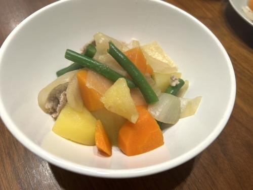 食感については、にんじんに多少の水っぽさは残るものの、玉ねぎや、甘みのあるほくほくとしたじゃがいもは美味しくいただけます。