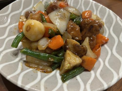 メイン料理として、ごろごろとした根菜入りの酢豚を作るのがおすすめ。市販のチルドタイプの酢豚の素を利用すれば、調理は非常に簡単。