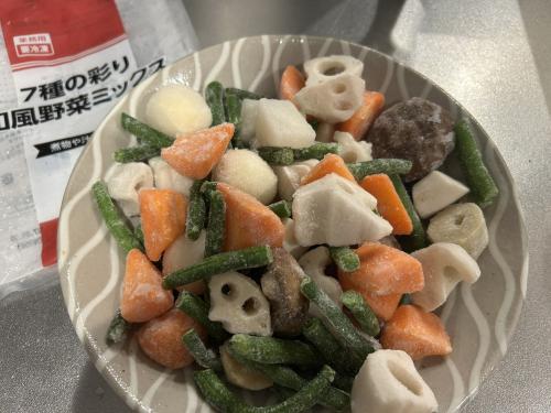野菜はバラバラに冷凍されているので、好みの量や野菜の配分を調整できるのも利点です。