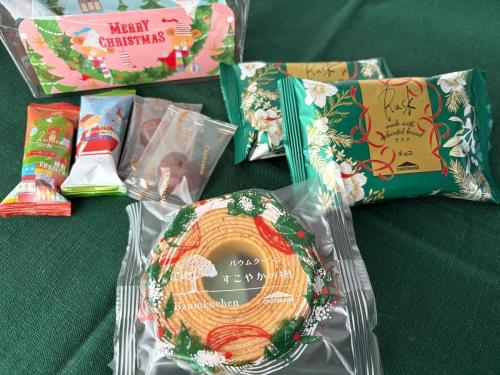 こちらはXmas菓子ラッピングで、人気のラスクやバームクーヘンが入っているのが特長。