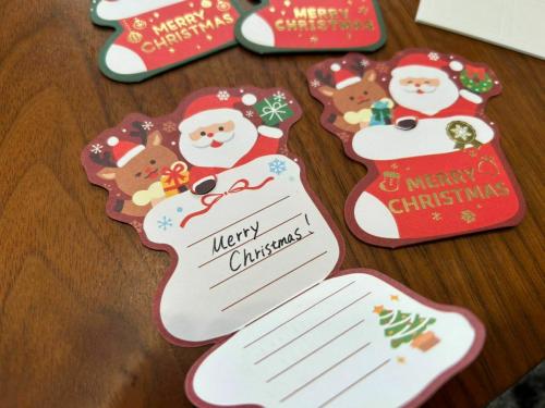 プレゼントにちょっとしたカードを添えたいという人におすすめなのは、プレゼントにぴたっと貼り付けられる「クリスマスメッセージカード」。
