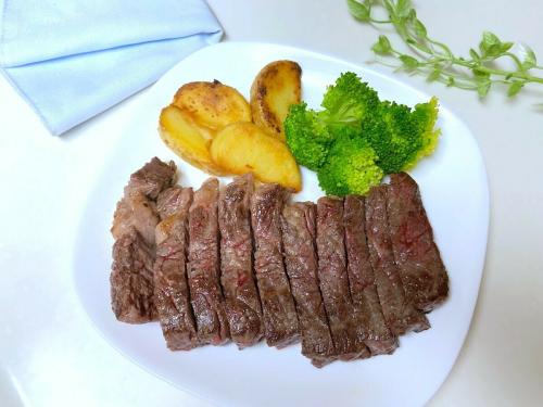 一緒にフライドポテトとブロッコリーを添えましたが、見た目も豪華で筆者の3人の子供たちも「ステーキだ!」とテンション爆上げ。