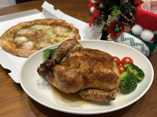 内 容:自家製ローストチキン1羽、マルゲリータピザ(直径約24cm)