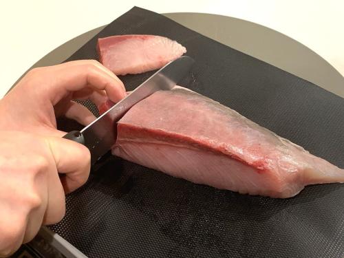 生食用のぶりさくなので、まずはシンプルにぶりの刺身でいただきます。