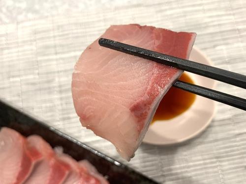 それでは、満を持してぶりの刺身を実食。甘い脂がたっぷり乗っているのがわかる美味しさで、舌の上に乗った脂はスッと溶けていきました!