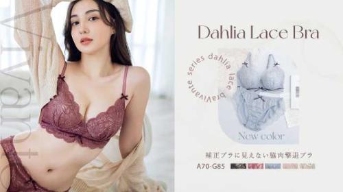 vivanteシリーズは「補正ブラに見えない」おしゃれなデザインが大きな魅力。大ぶりのダリアレースを360°贅沢に使い、リボンのアクセントで大人可愛い印象に仕上がっています。