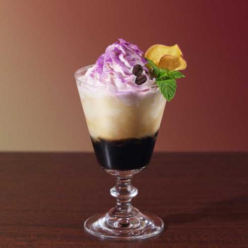 3階アリビアーモ™ バーでは、秋の味覚“焼き芋”と樽熟成コーヒーのゼリーを合わせた『アリビアーモ™ フローズン 焼き芋 with バレルエイジド コーヒージェリー』(店内2,200円)が登場。