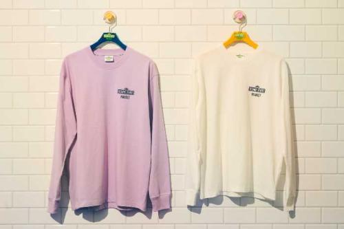 アパレルアイテムはシーズンレスで活躍できるラインアップ。背面にワッフルを大胆にデザインしたWAFFLEロンT(全2種/7,480円、M・L)や、ドーナツをプリントしたDONUTSロンT(全2種/7,480円、M・L)は、リンクコーデにもおすすめ。