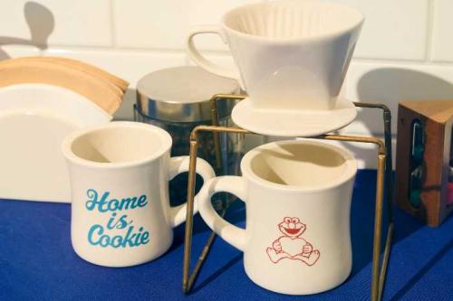 今回の注目は、セサミストリートの世界観を凝縮した雑貨たち。ぽってりとした形が愛らしいマグカップ(全2種/3,960円)は、カフェでも使用される人気の定番。