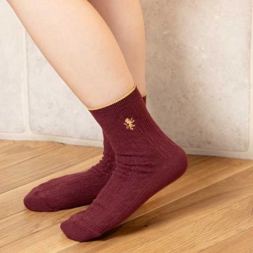 次に、ホグワーツ4寮をイメージしたケーブル編みソックス(各1,650円・23~25cm)と、ハニーデュークスデザインのメロウリブソックス(1,870円・23~25cm)。