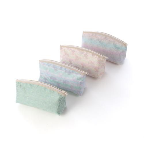 立体感のある織りの表現と深みのある色彩が特徴です。ラインナップは古帛紗・出帛紗・数寄屋袋・懐紙入・ミニ巾着・半月ポーチ・がま口コスメポーチなど。