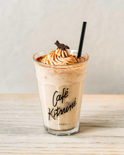 全国のCafé Kitsunéで楽しめるのが「マロンショコラシェイク」(イートイン¥950/テイクアウト¥850)。