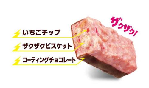 人気の「いちごのサンダーミニバー」は、いちごチップの配合量をさらにアップ♪甘酸っぱい果実感とチョコのまろやかさが絶妙に調和し、ザクザク食感で満足度も抜群です。