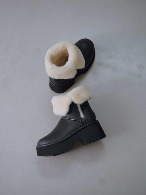 リアルレザーとボア、軽量プラットフォームソールの組み合わせで、秋冬コーデを格上げしながら快適な履き心地も叶えます。足元から季節感を楽しみたい方におすすめの一足です♪