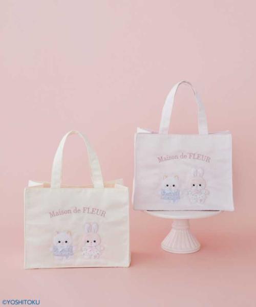 スクエアトート(税込6,900円)は、ふわふわの刺繍でクリーミーねことクリーミーうさぎを表現。